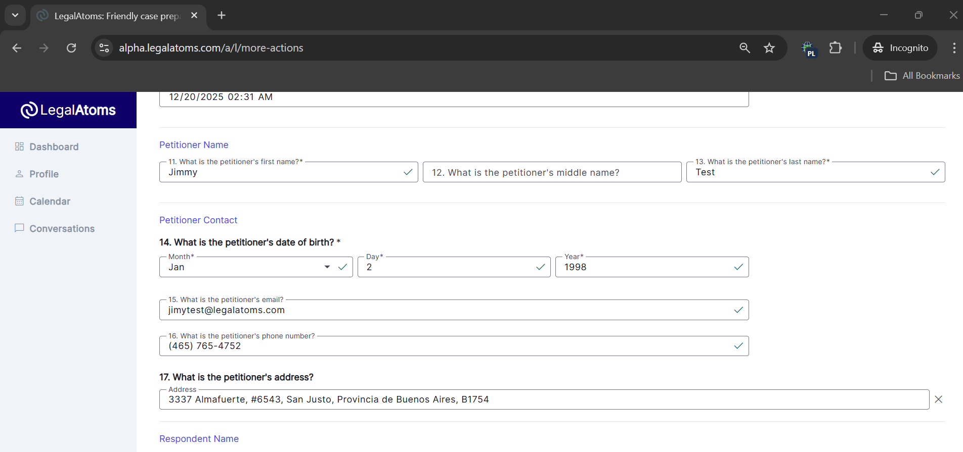 - Petitioner First Name