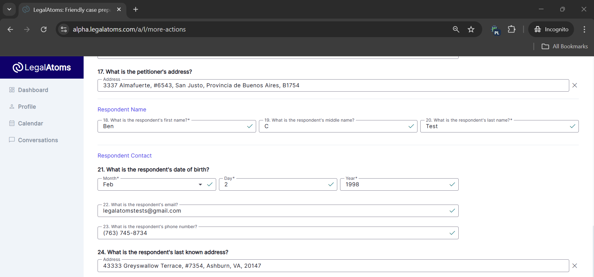 - Respondent last know address