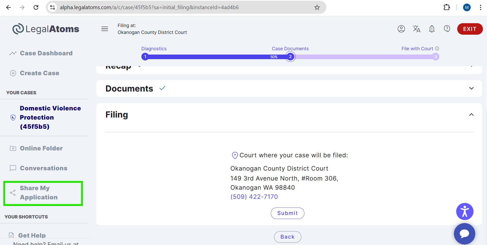 Step 2: Click on Share My Application Once signed in, the client clicks “Share My Application” from the menu on the left side of their dashboard.