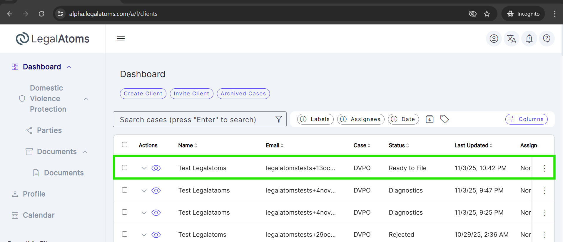 As soon as the client shares their application, the case automatically appears on the nonprofit’s dashboard. The nonprofit can then open the client’s application, review details, and begin assisting them.