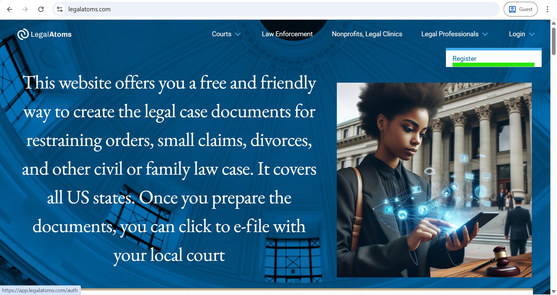 - Open this URL link in your browser. https://legalatoms.com/
