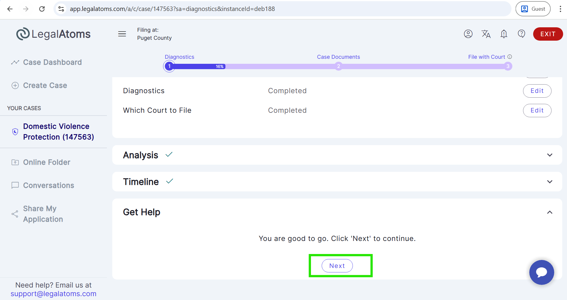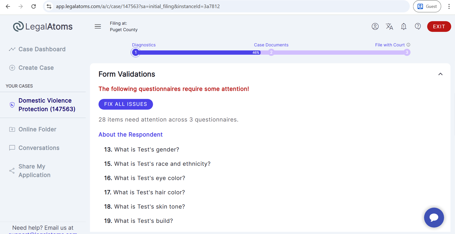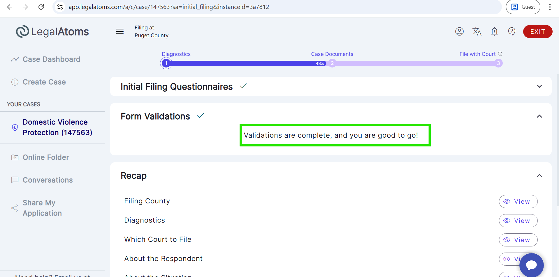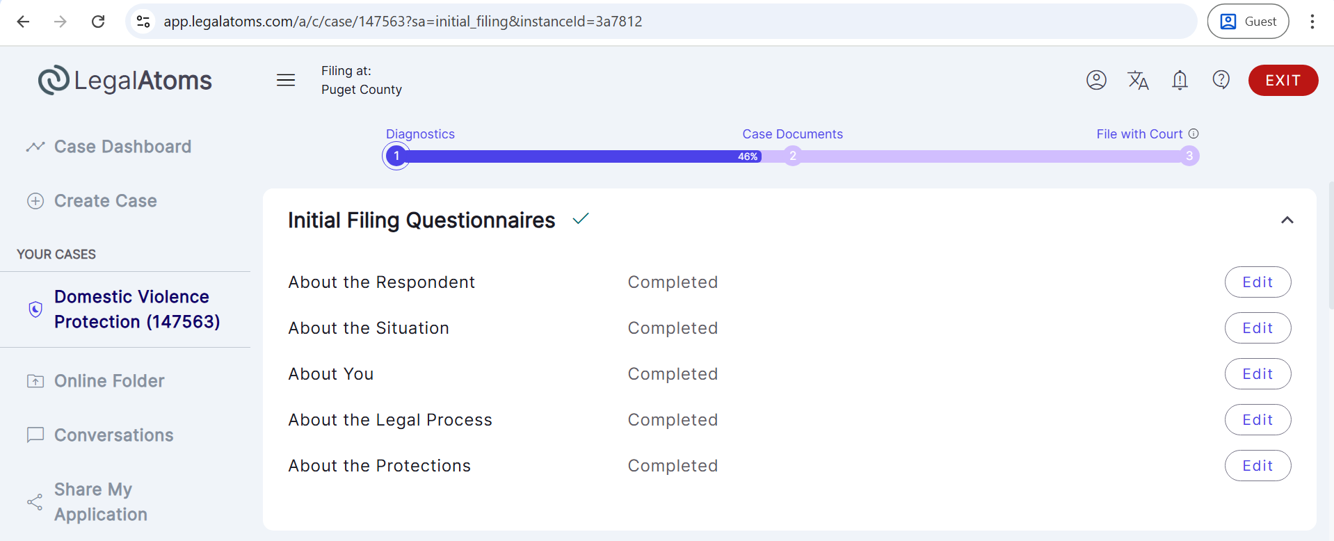 - Then, select the case type (e.g., Domestic Violence Protection).