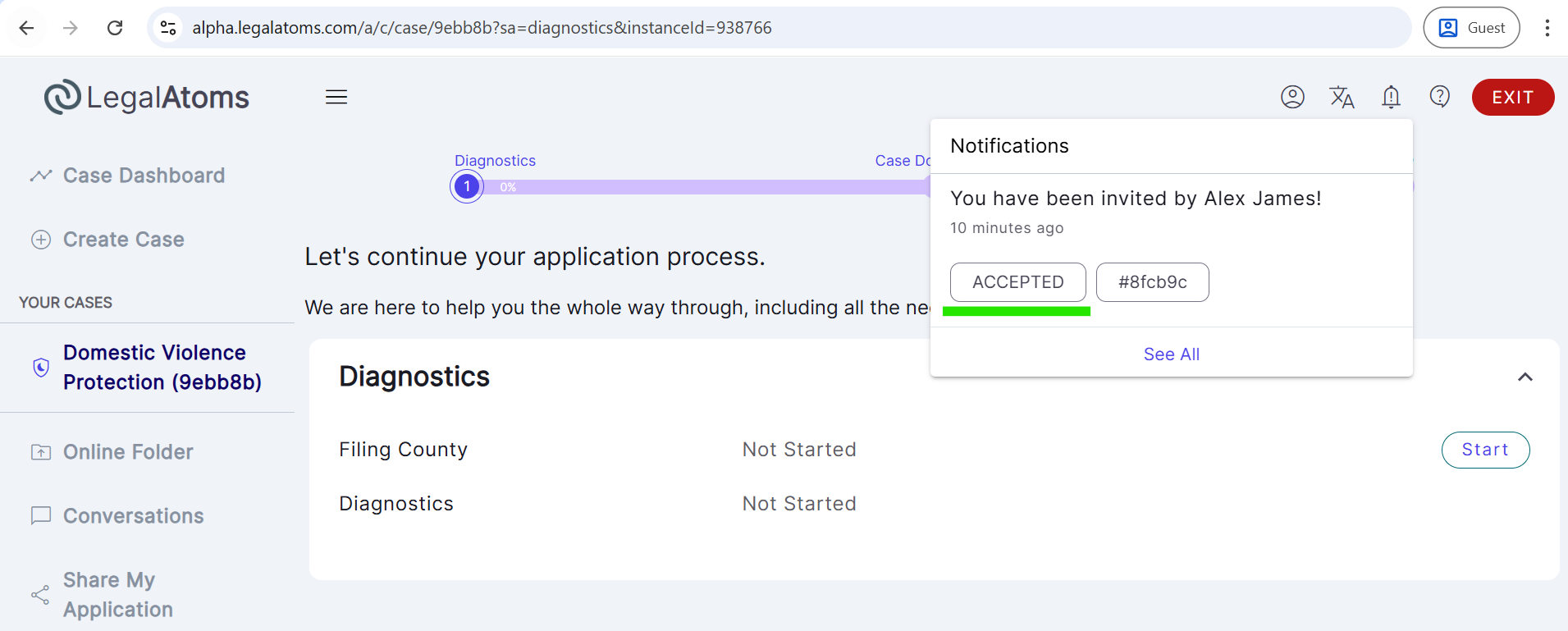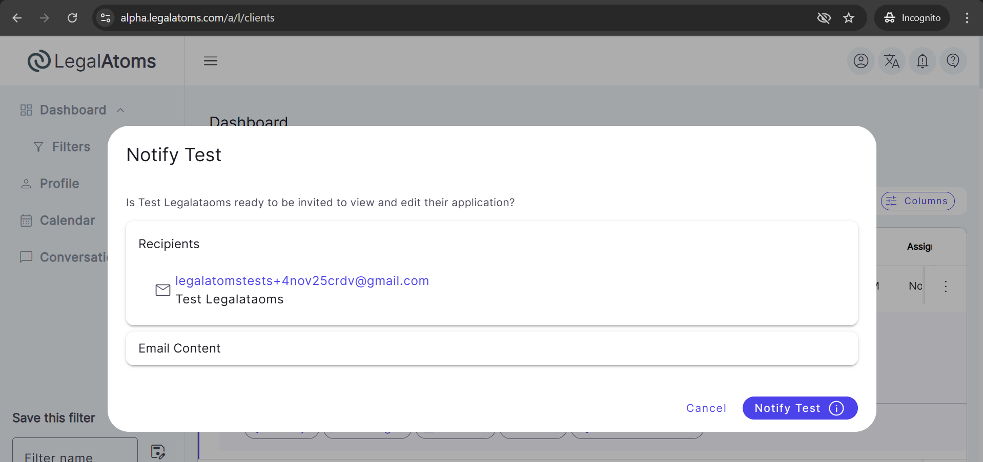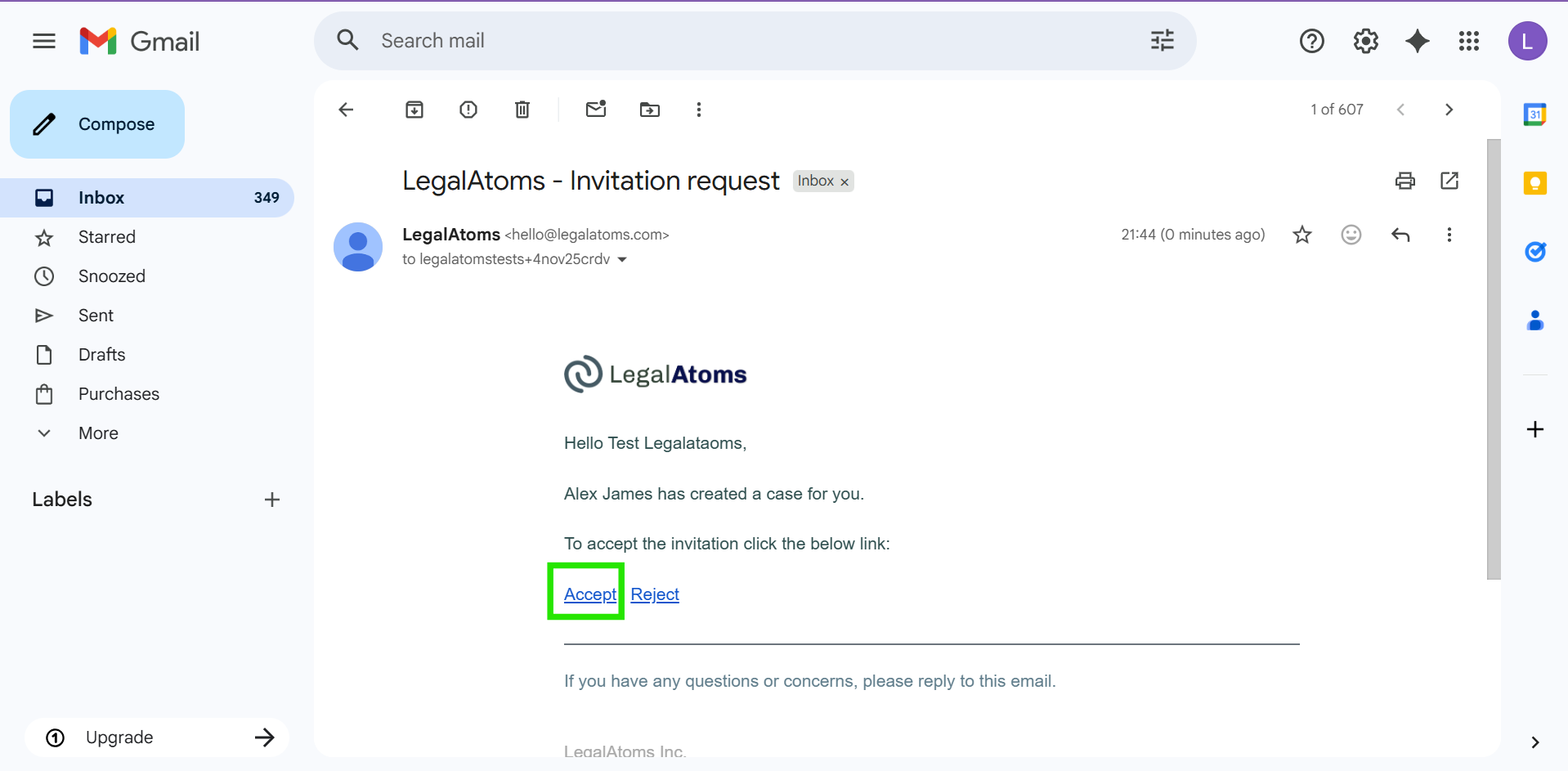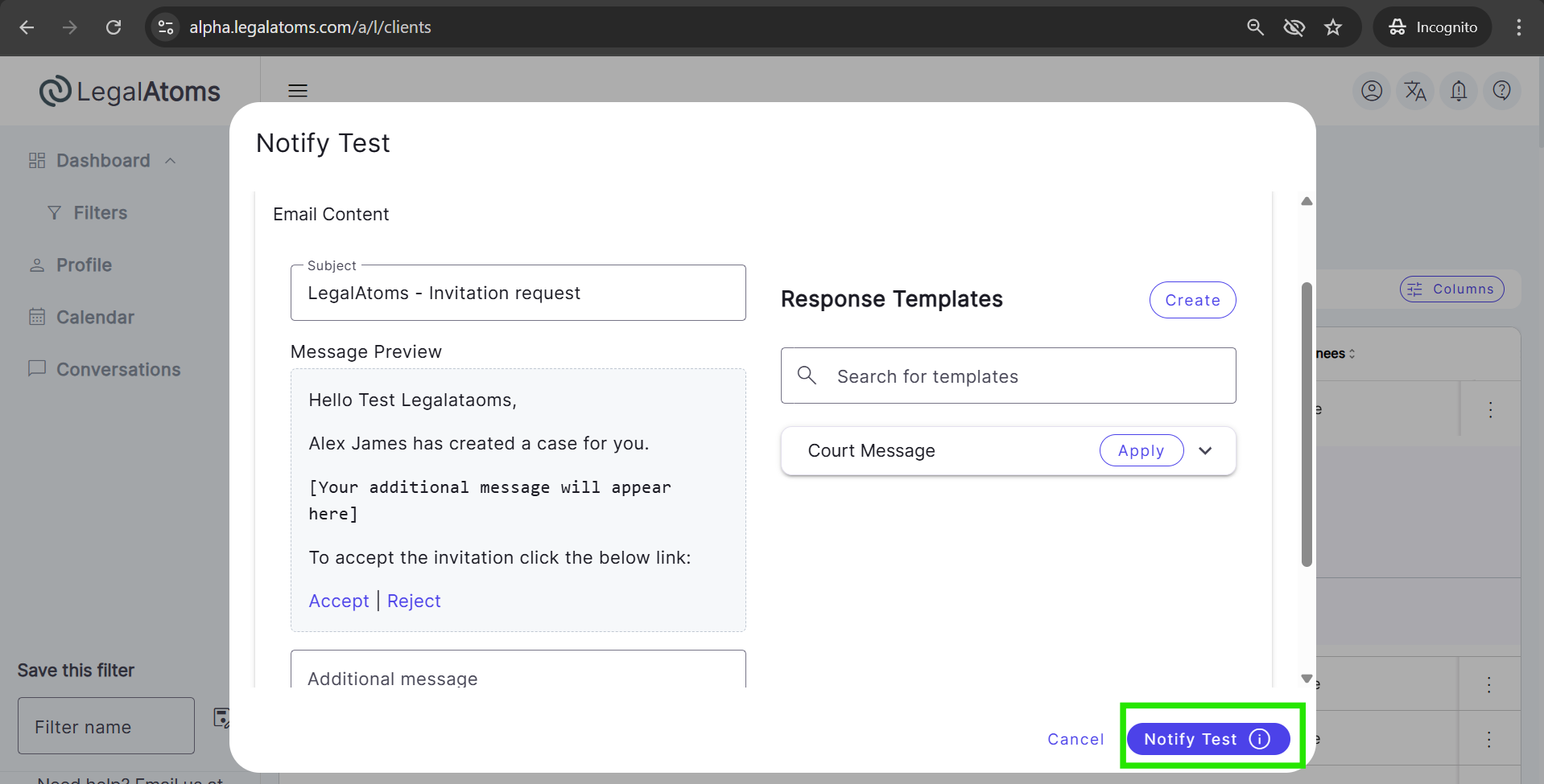 The client can click Accept in their email or directly from LegalAtoms notifications
